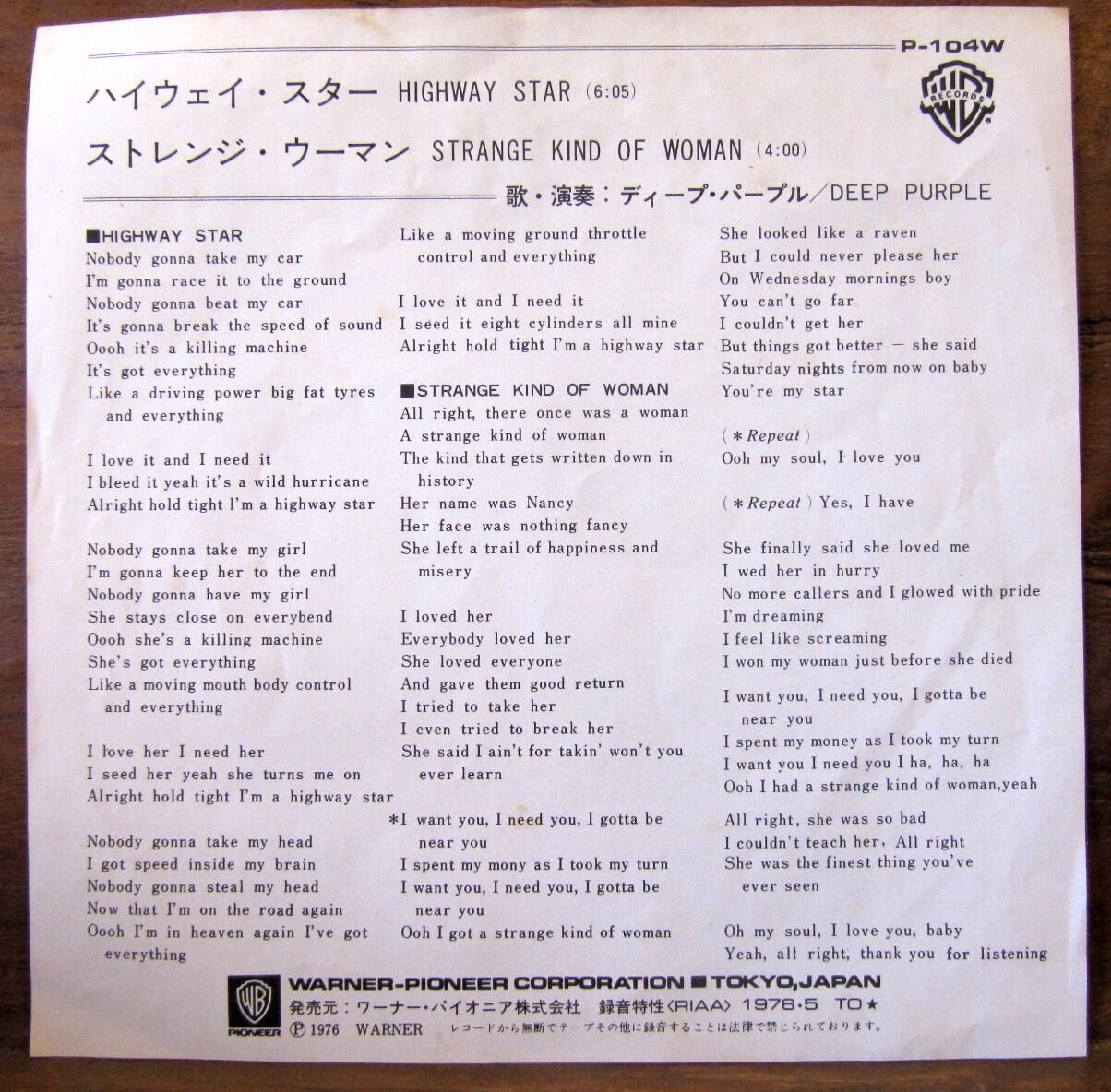 ●説明:1976 / P-104W / ワーナー