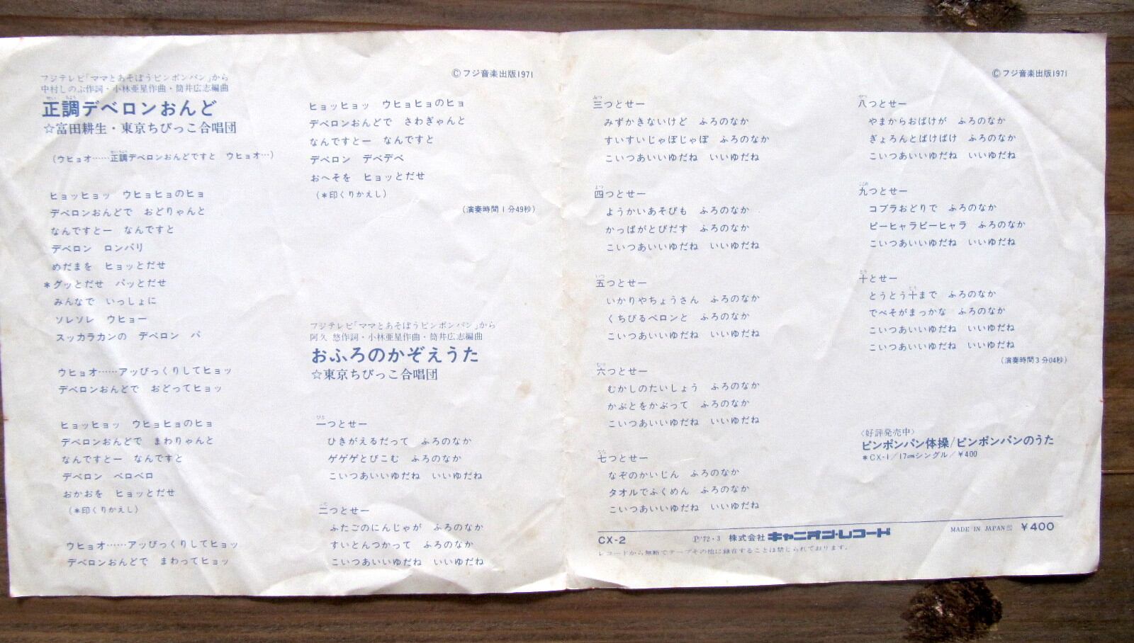 ●曲 A/正調デベロン音頭 ・B/おふろのかぞえうた