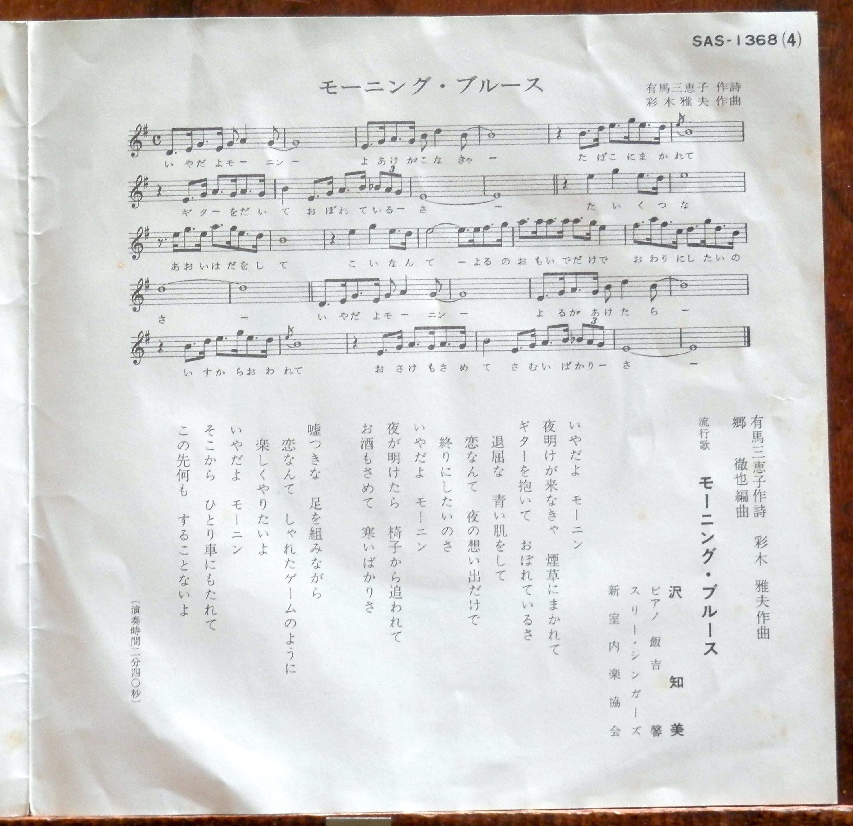 '69【EP】沢知美 - モーニング・ブルース ■視聴■