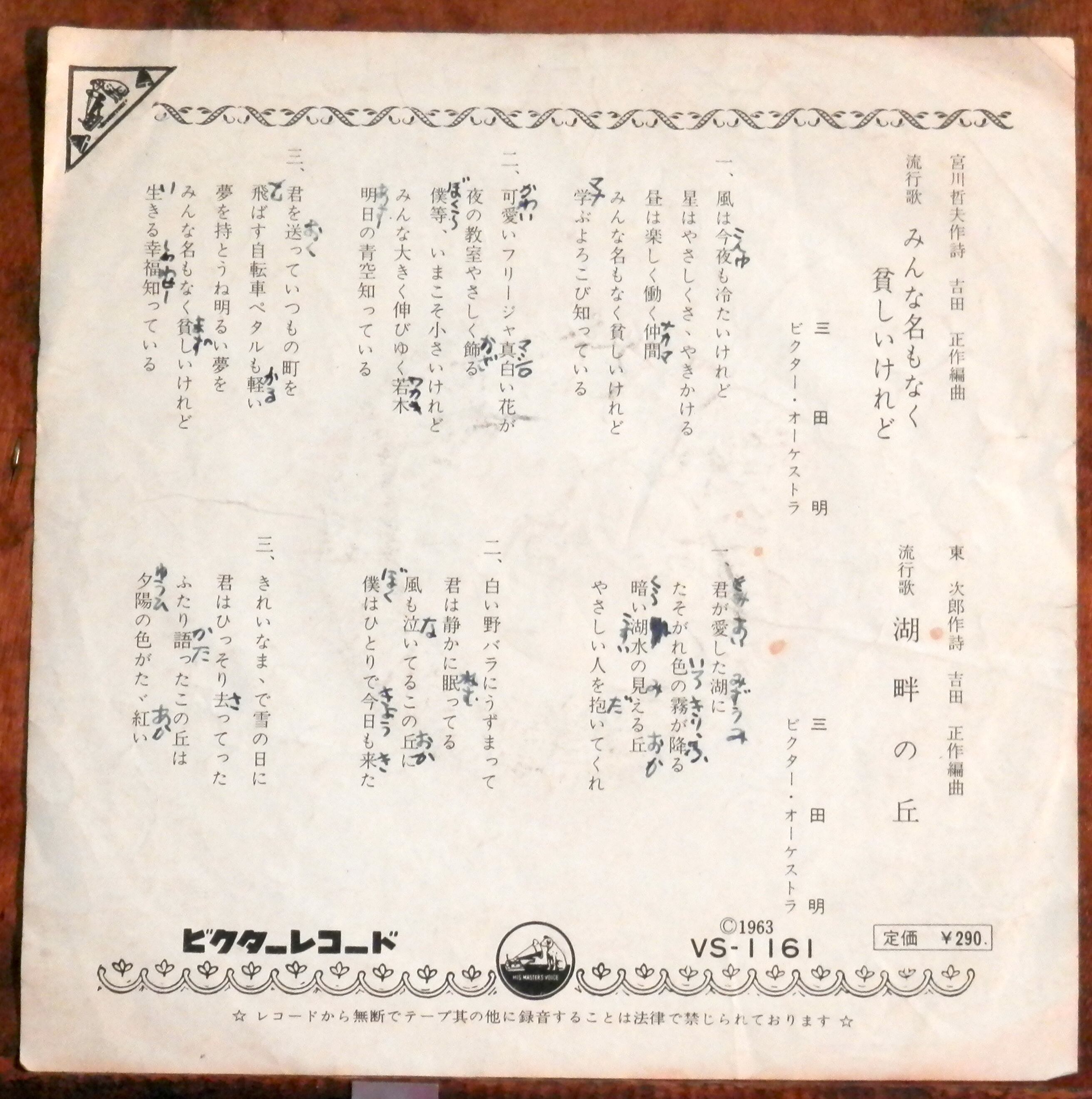 '63【EP】三田明 - みんな名もなく貧しいけれど
