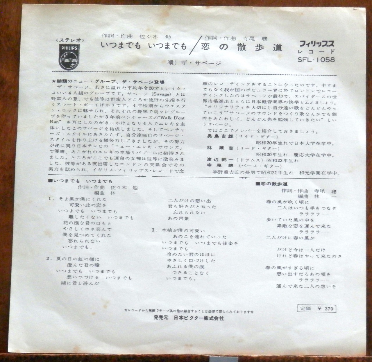 '66【EP】ザ・サベージ - いつまでもいつまでも *デビュー