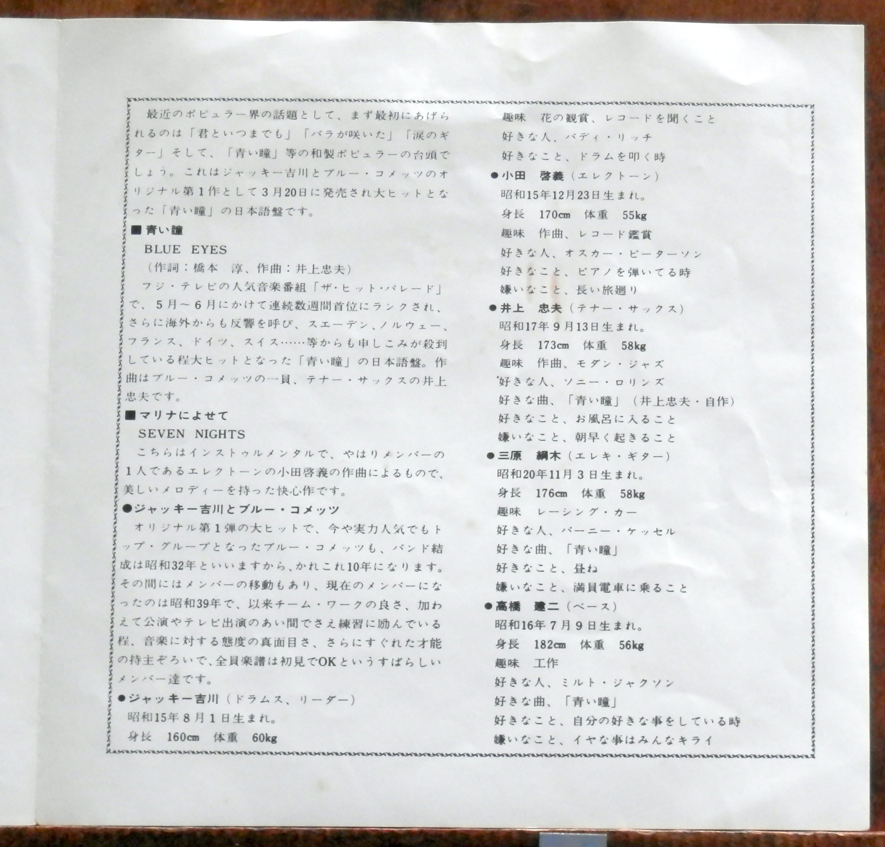 '66【EP】ジャッキー吉川とブルーコメッツ - 青い瞳(日本語)