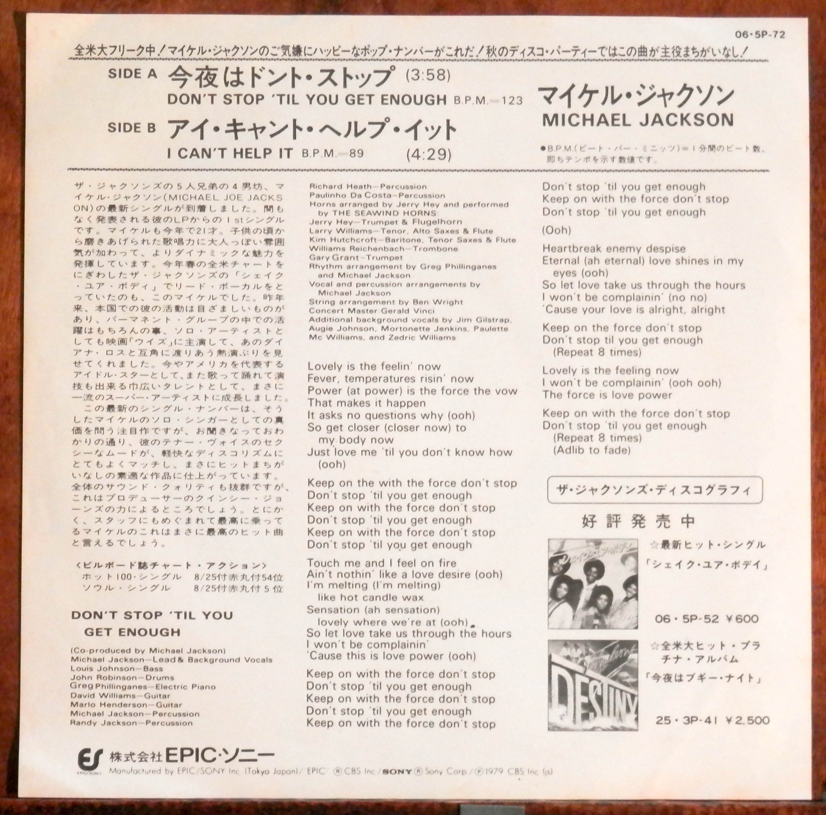 1979 / 06 5P-72 / EPICソニー