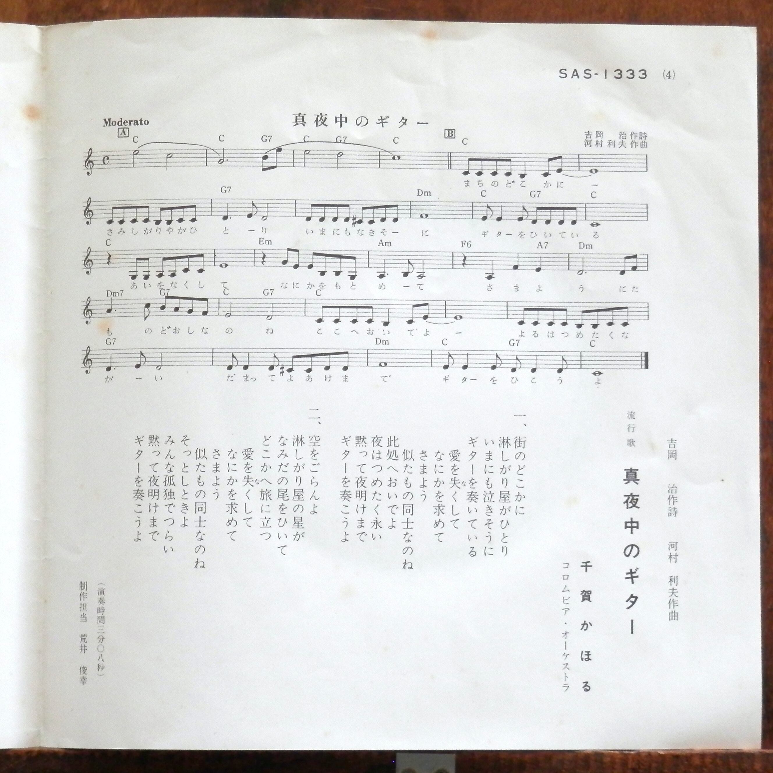 '69【EP】千賀かほる - 真夜中のギター