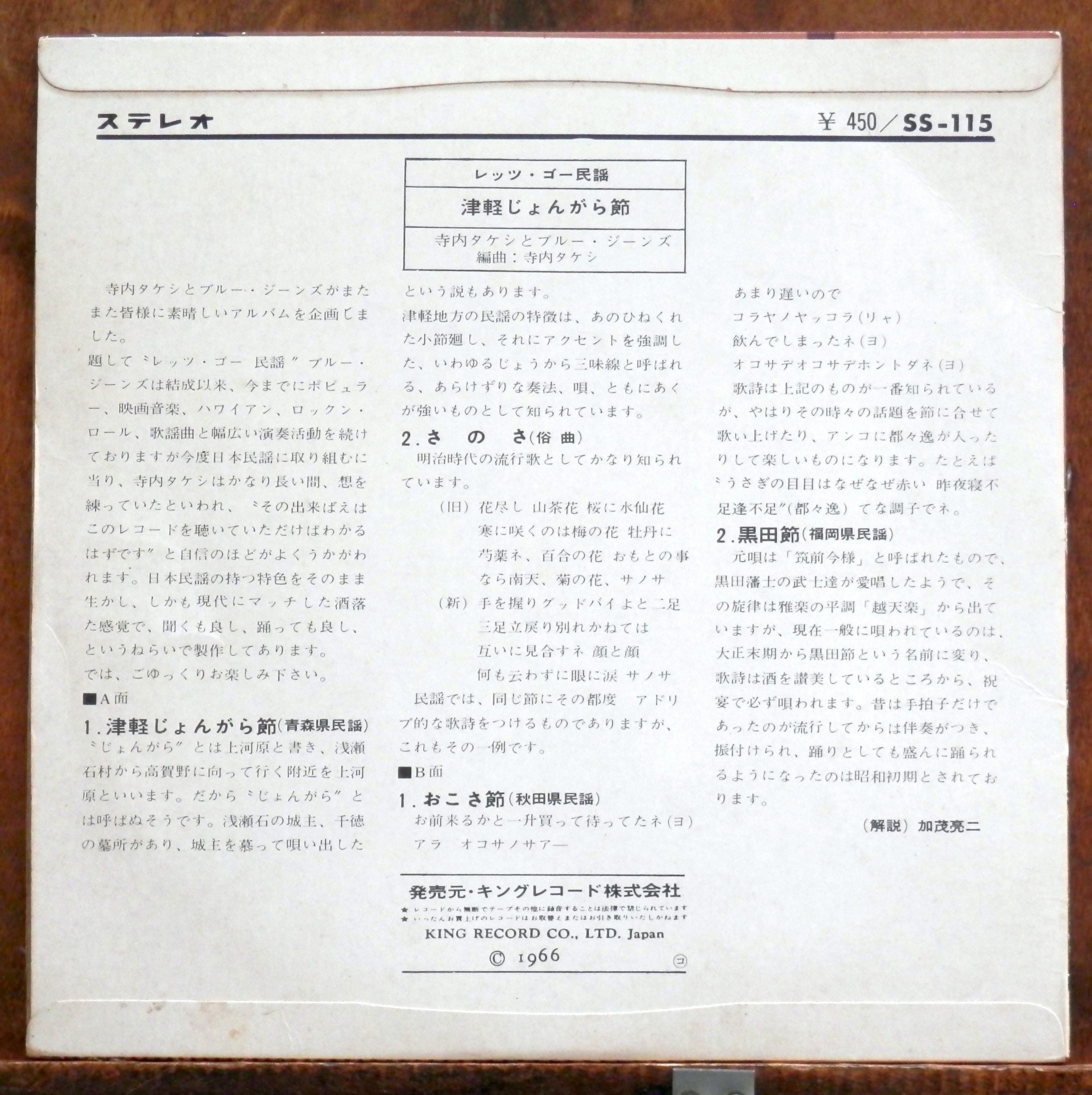 '66【EP】寺内タケシとブルージーンズ - レッツ・ゴー・民謡!