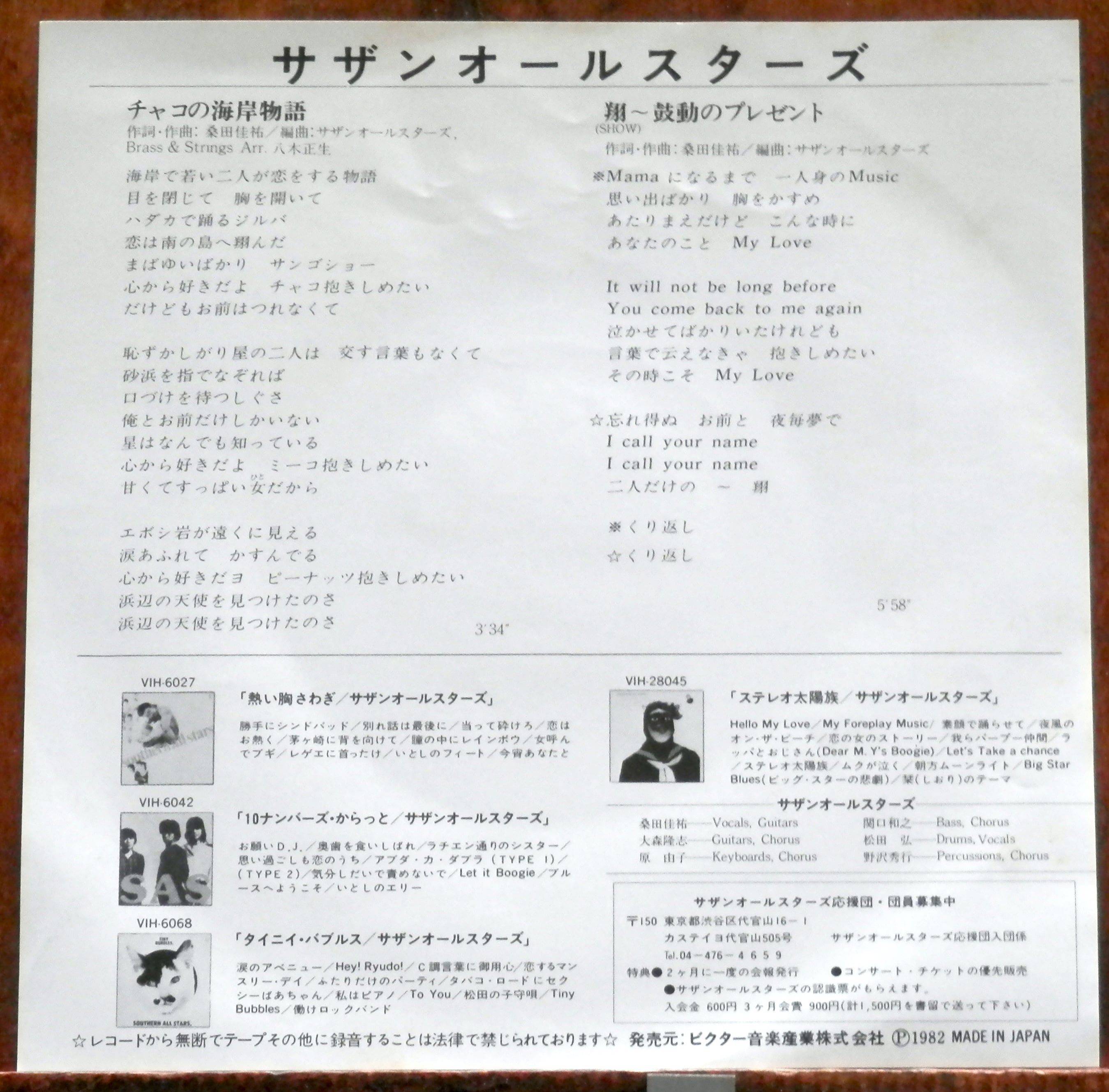 '82【EP】サザンオールスターズ - チャコの海岸物語