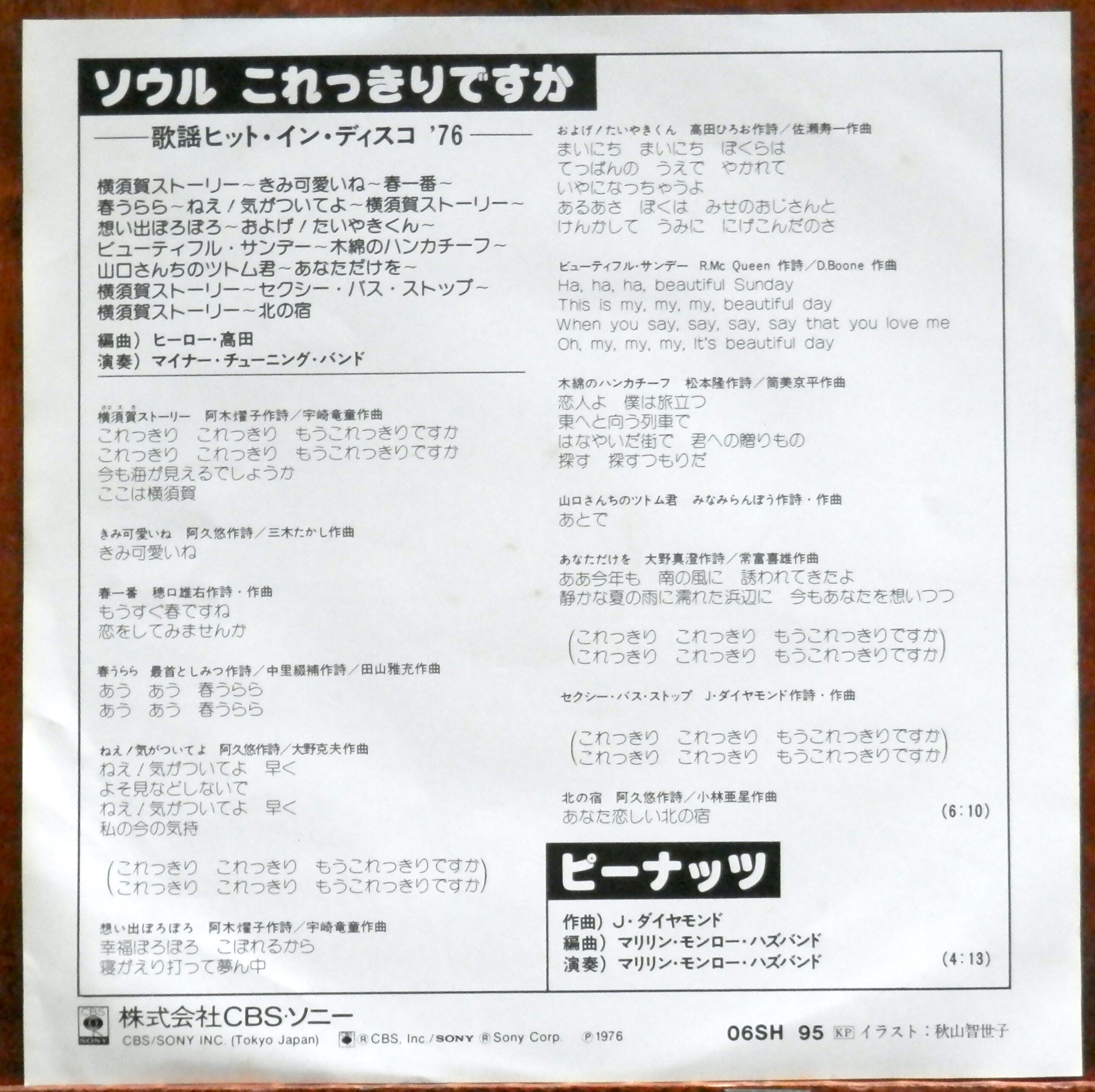 *作曲:J・ダイヤモンド(筒美京平の変名)、編曲・演奏:マリリン・モンロー・ハズバンド)