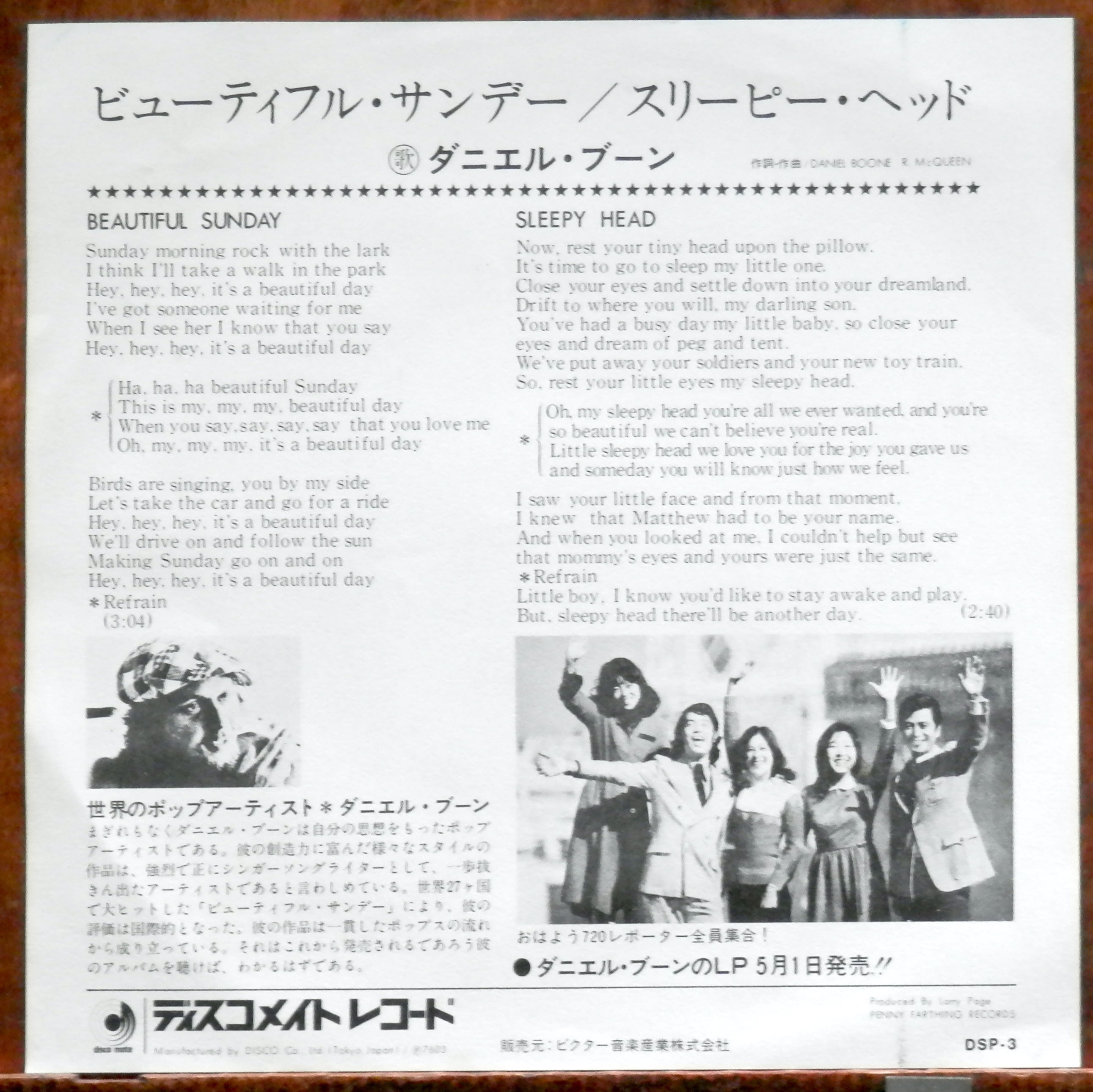 '76【EP】ダニエル・ブーン - ビューティフル・サンデー
