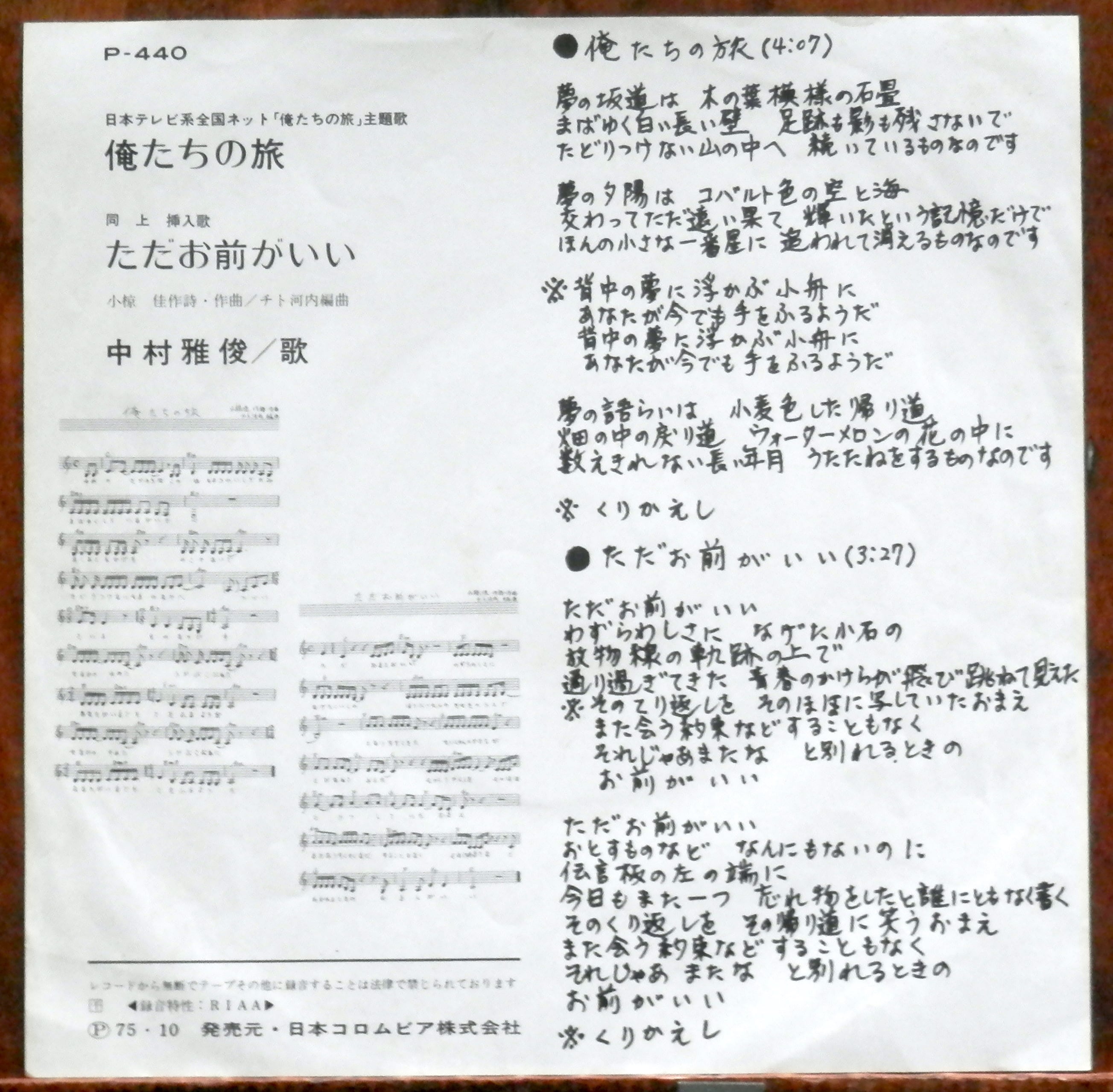 '75【EP】中村雅俊 - 俺たちの旅