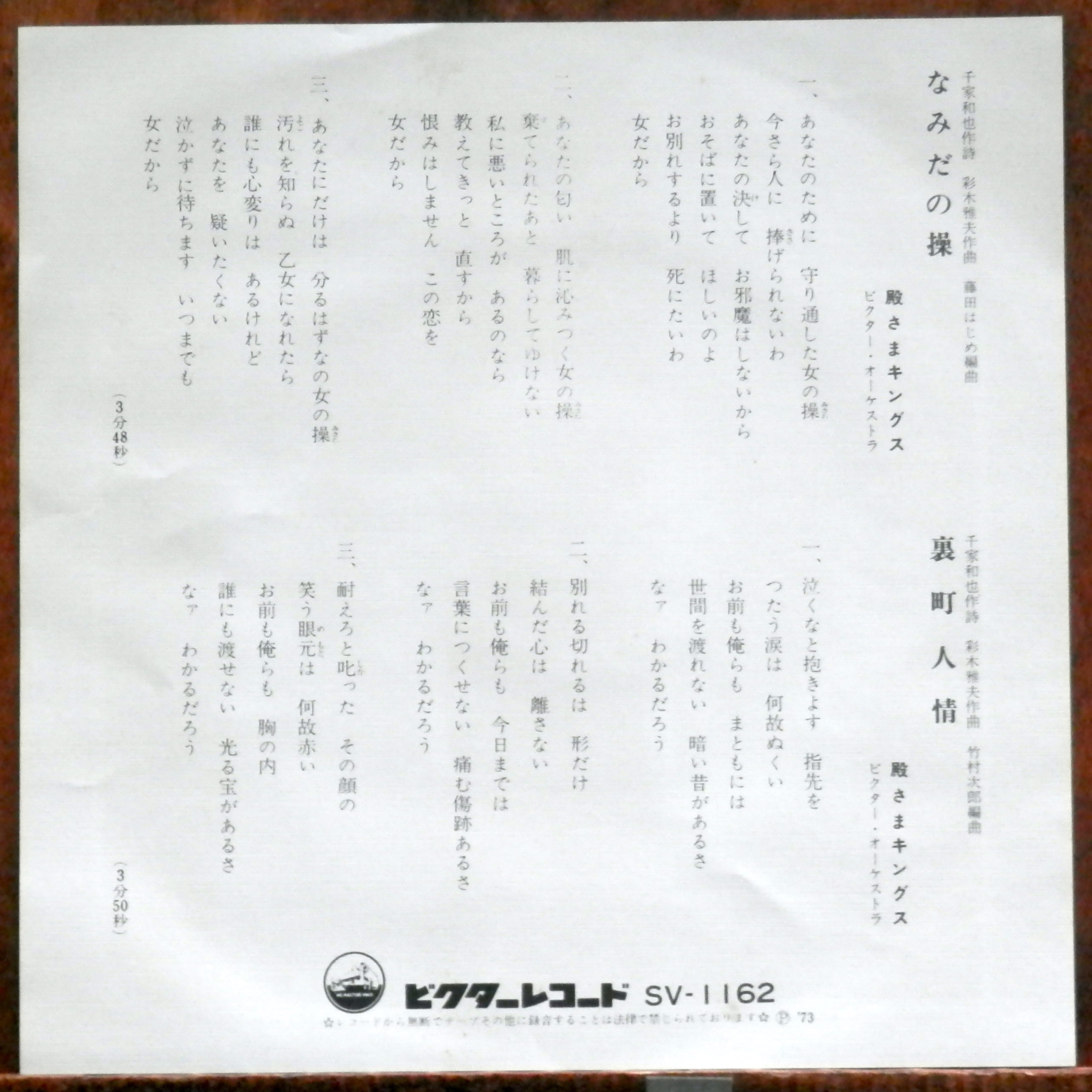'73【EP】殿さまキングス - なみだの操