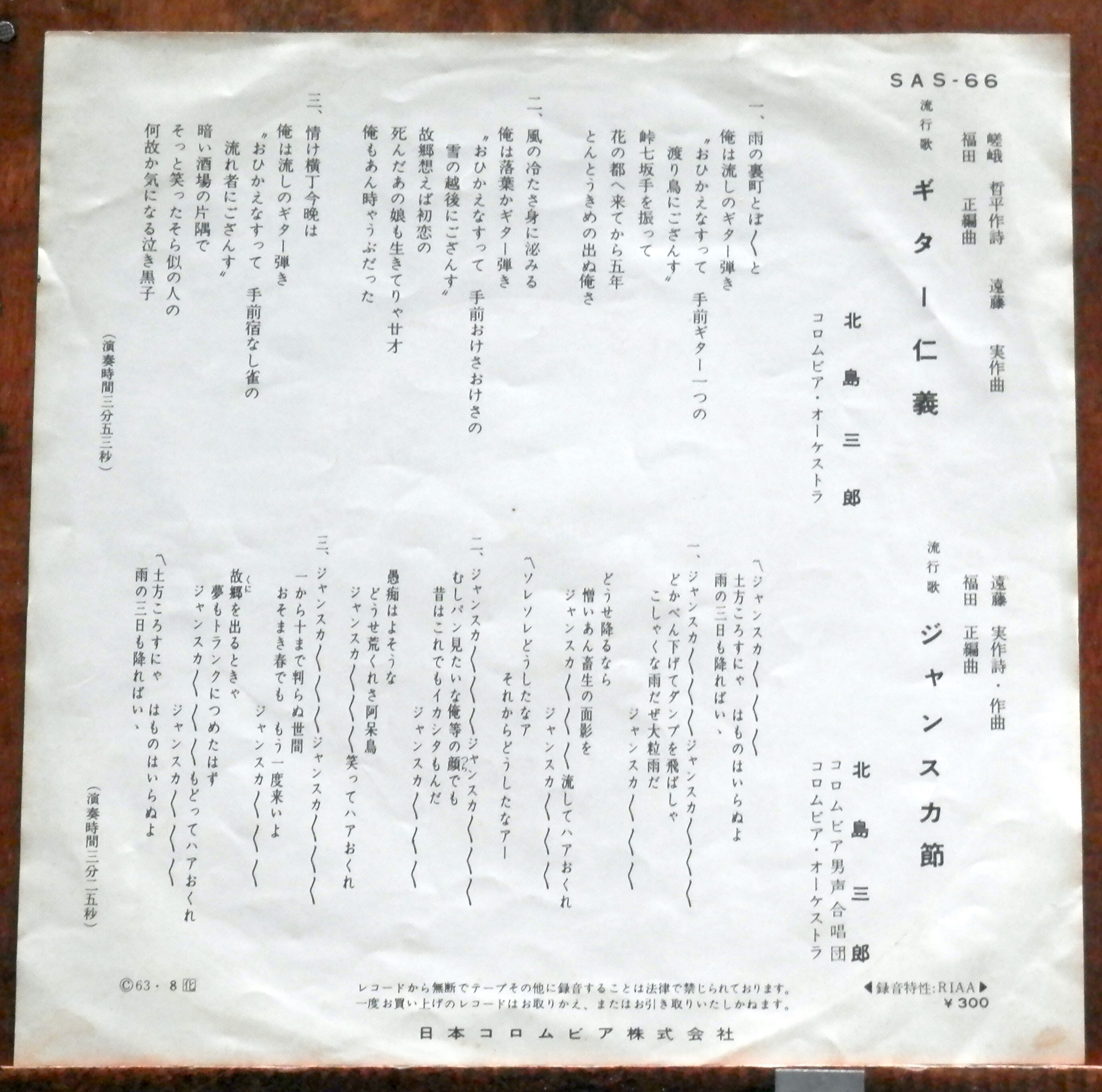 '63【EP】北島三郎 - ギター仁義/ジャンスカ節■視聴■