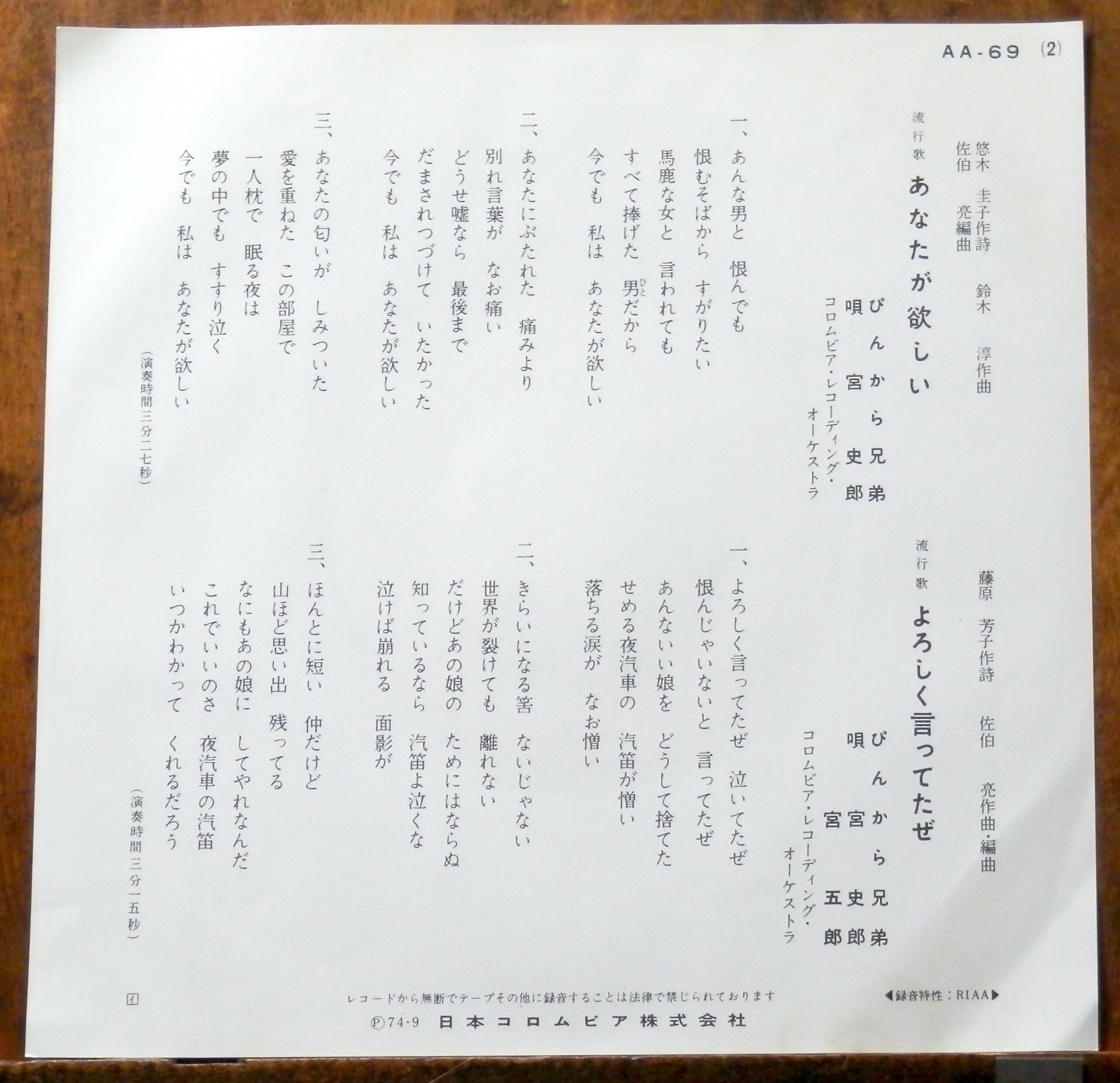 '74【EP】ぴんから兄弟 - あなたが欲しい