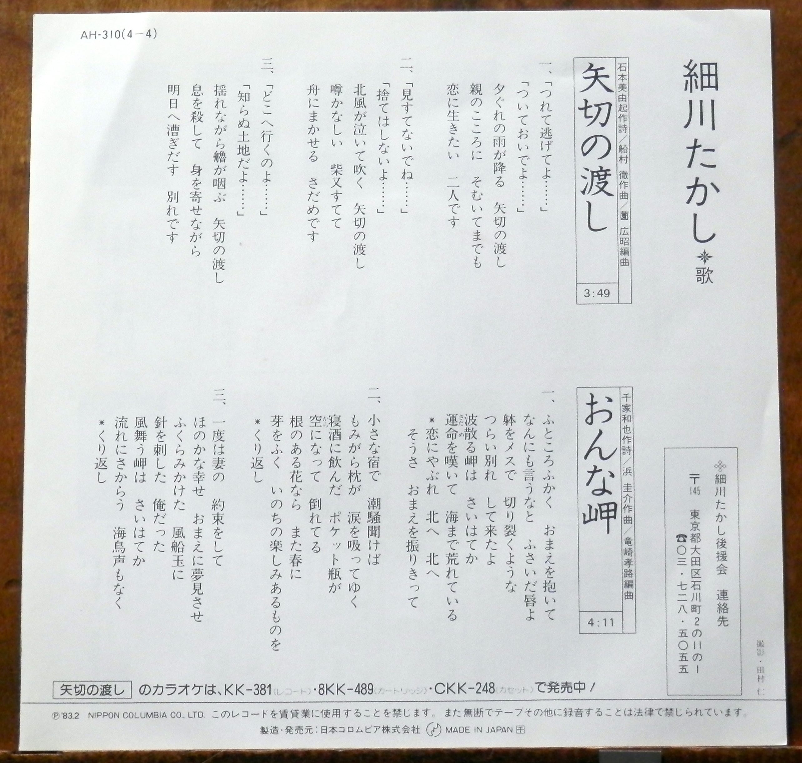 '83【EP】細川たかし - 矢切の渡し