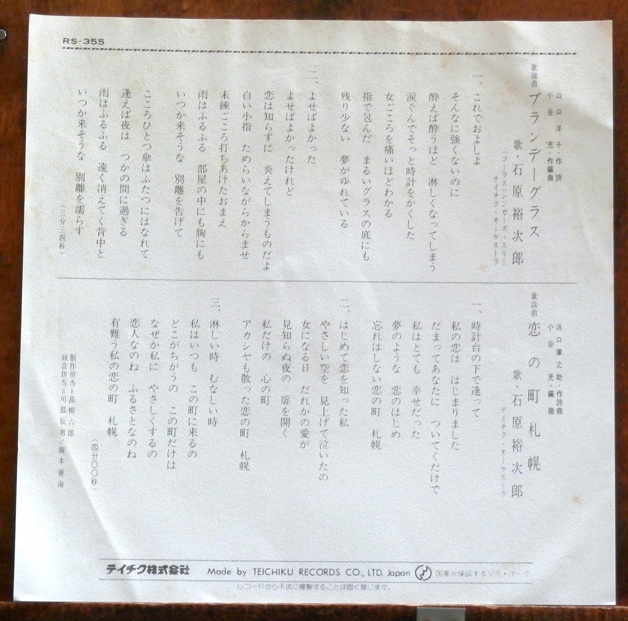 再【EP】石原裕次郎 - ブランデーグラス/恋の町札幌