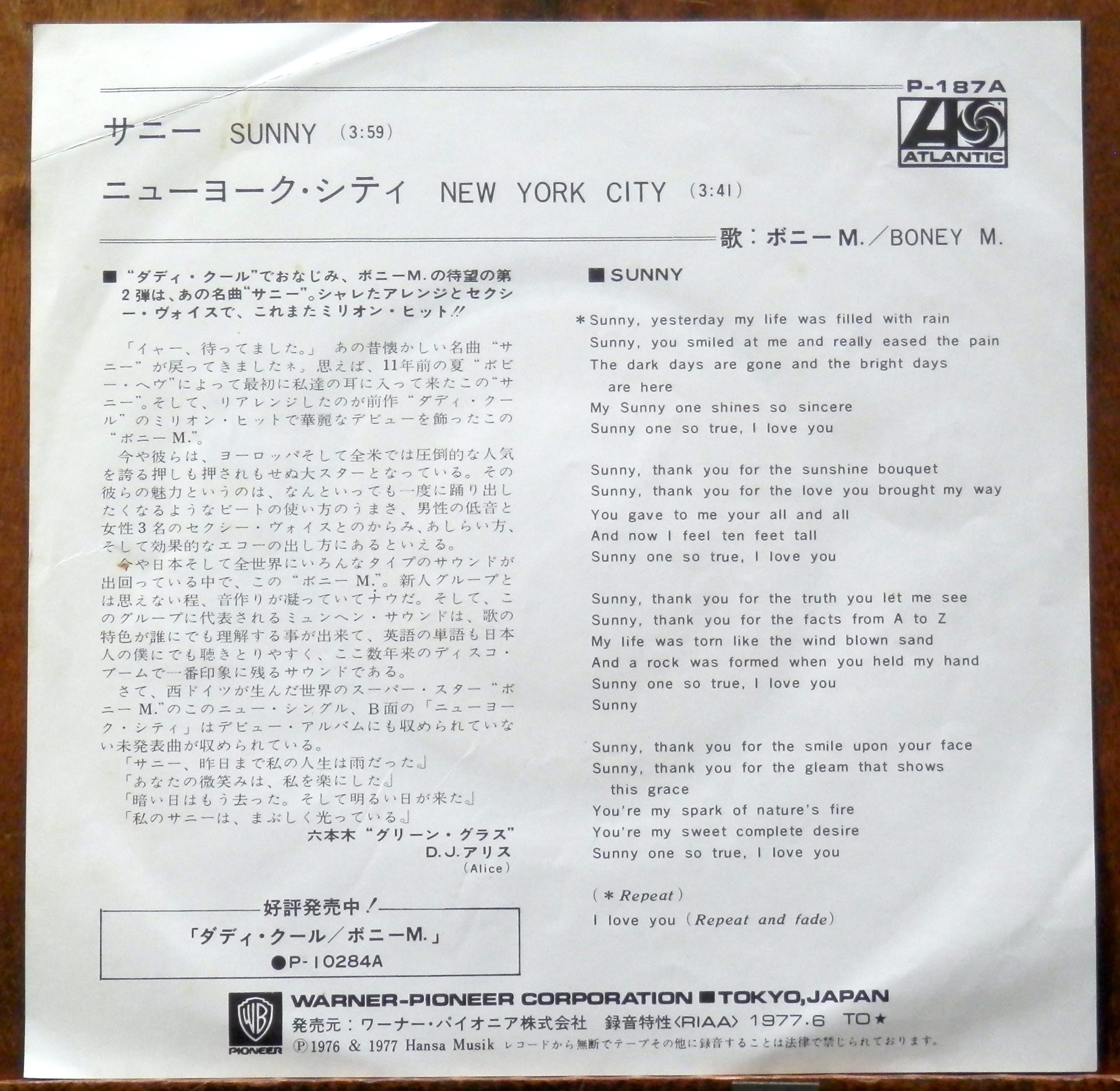 '77【EP】ボニーM - サニー