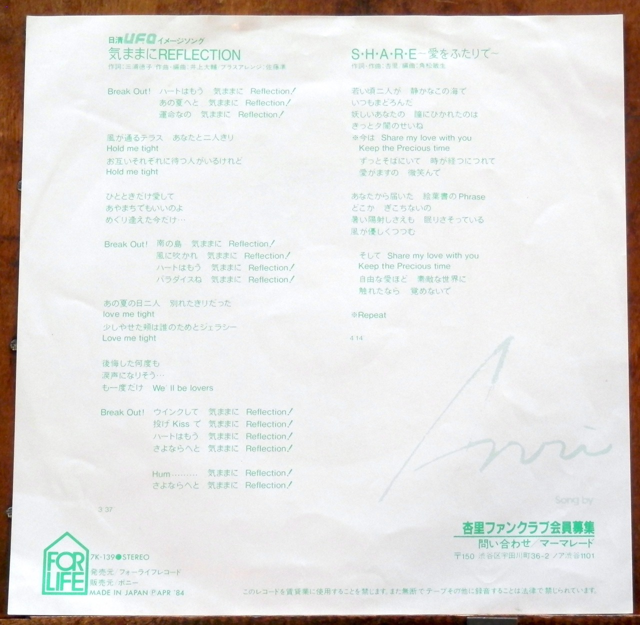 '84【EP】杏里 - 気ままにREFLECTION