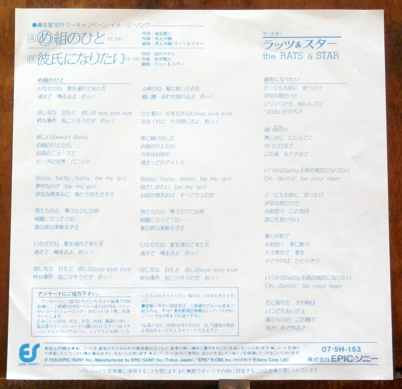 *10th(ラッツ名義1st) /B=アルバム未収録 /'83 HIT!