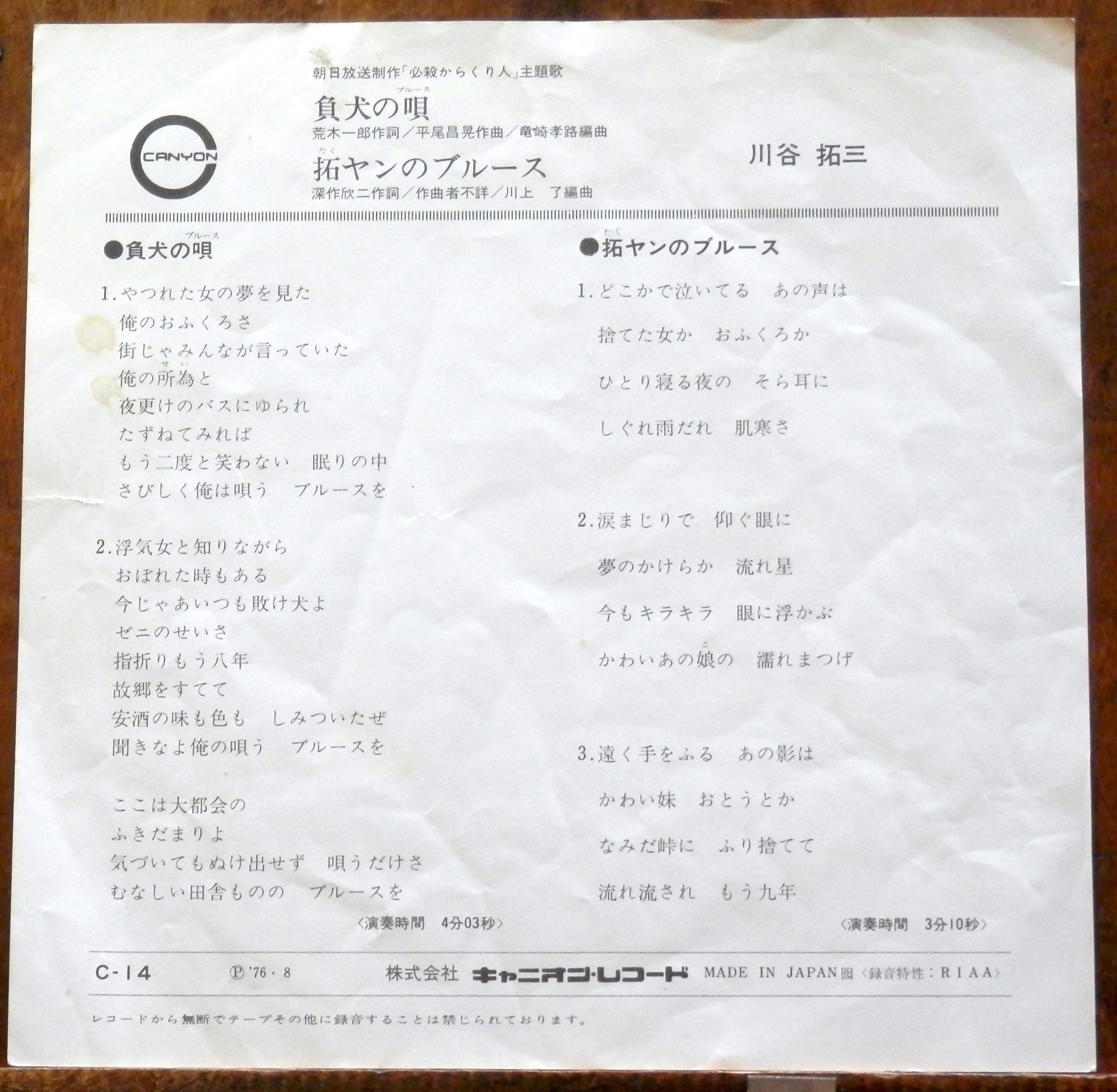 '76【EP】川谷拓三 - 負犬の唄 *必殺からくり人