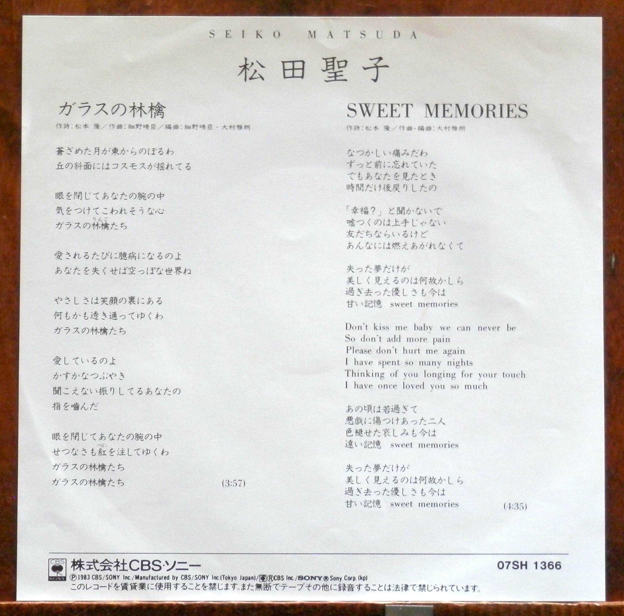 '82【EP】松田聖子 - ガラスの林檎/SWEET MEMORIES