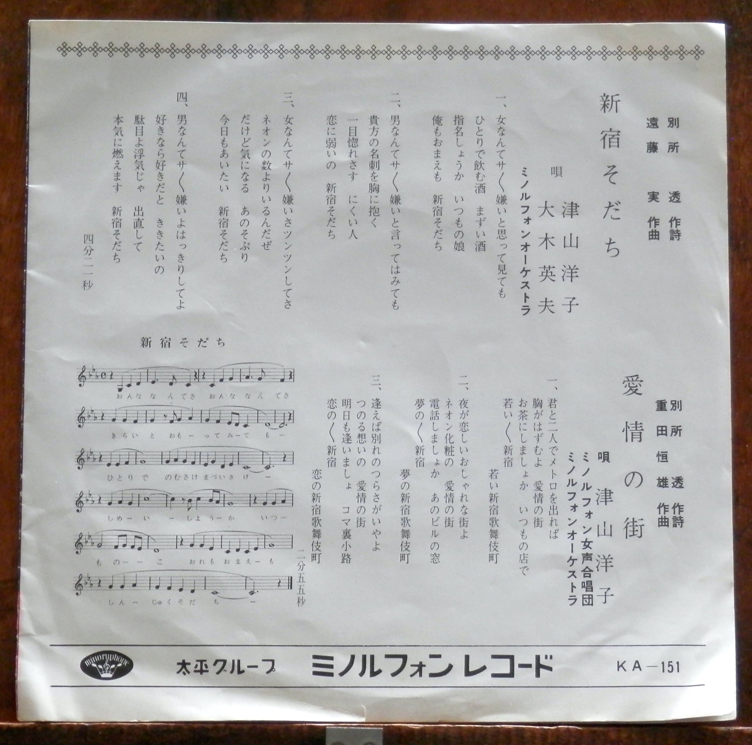 '67【EP】津山洋子/大木英夫 - 新宿そだち