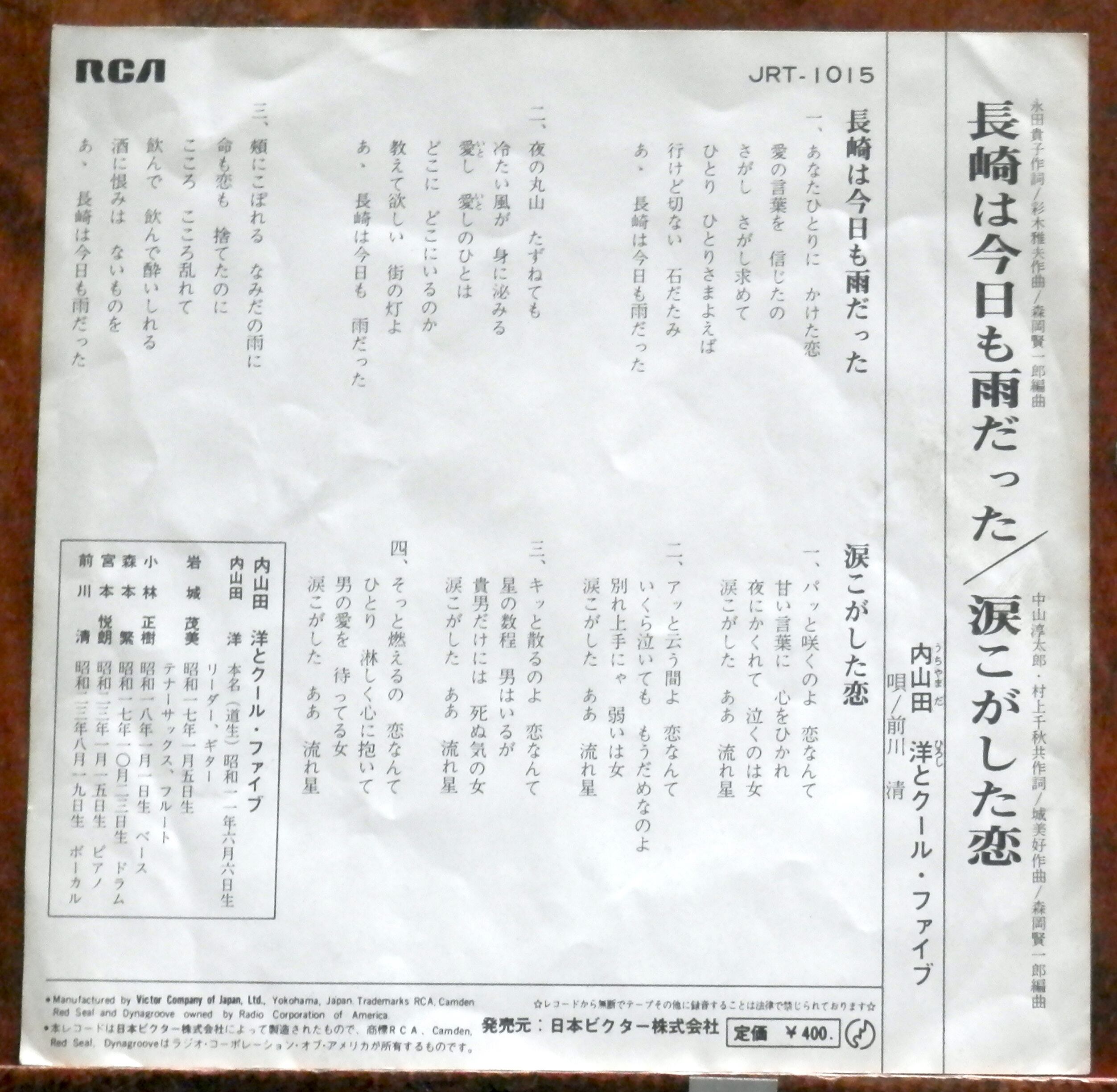 '69【EP】内山田洋とクール・ファイブ - 長崎は今日も雨だった