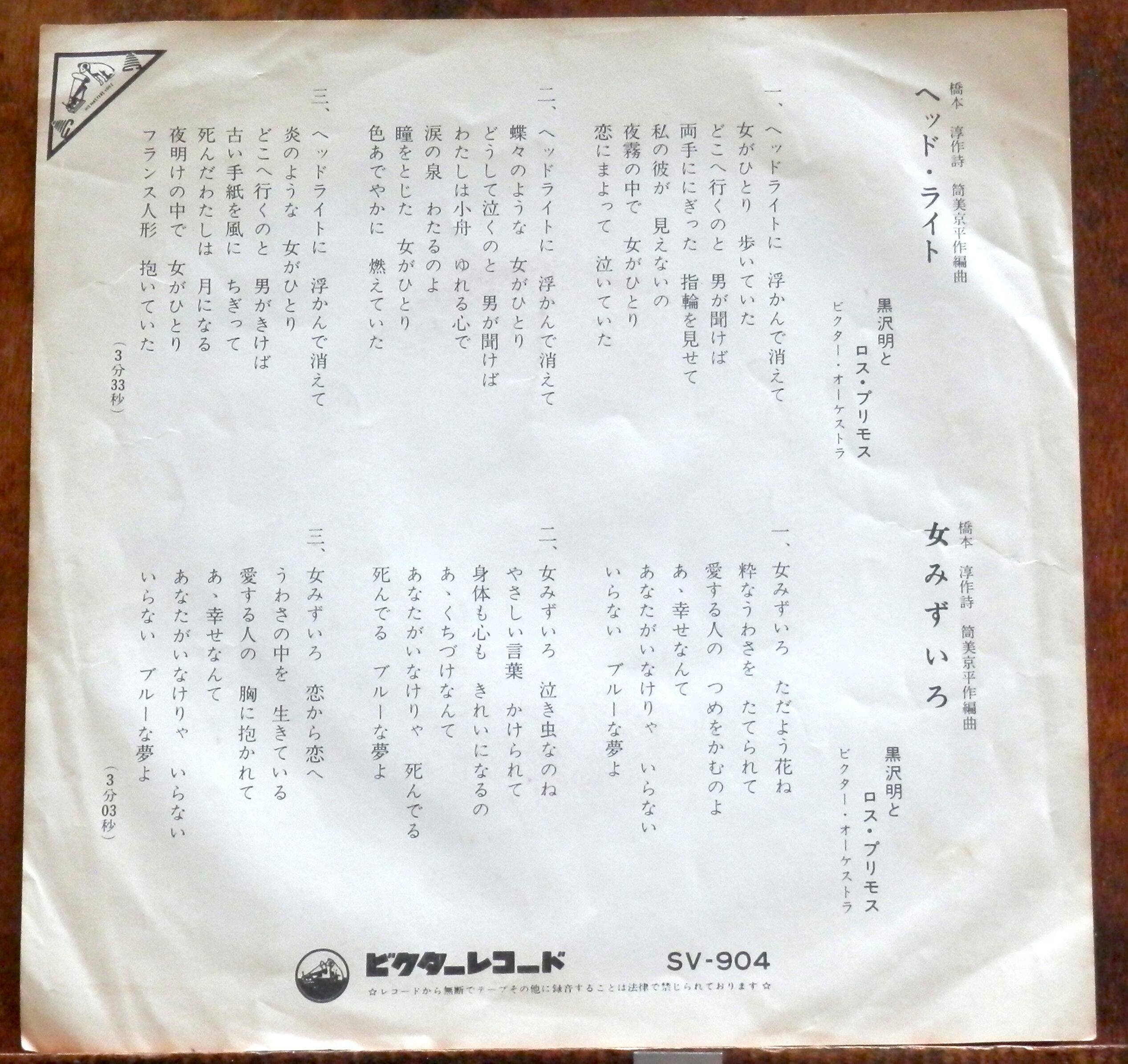 '69【EP】黒沢明とロス・プリモス - ヘッド・ライト