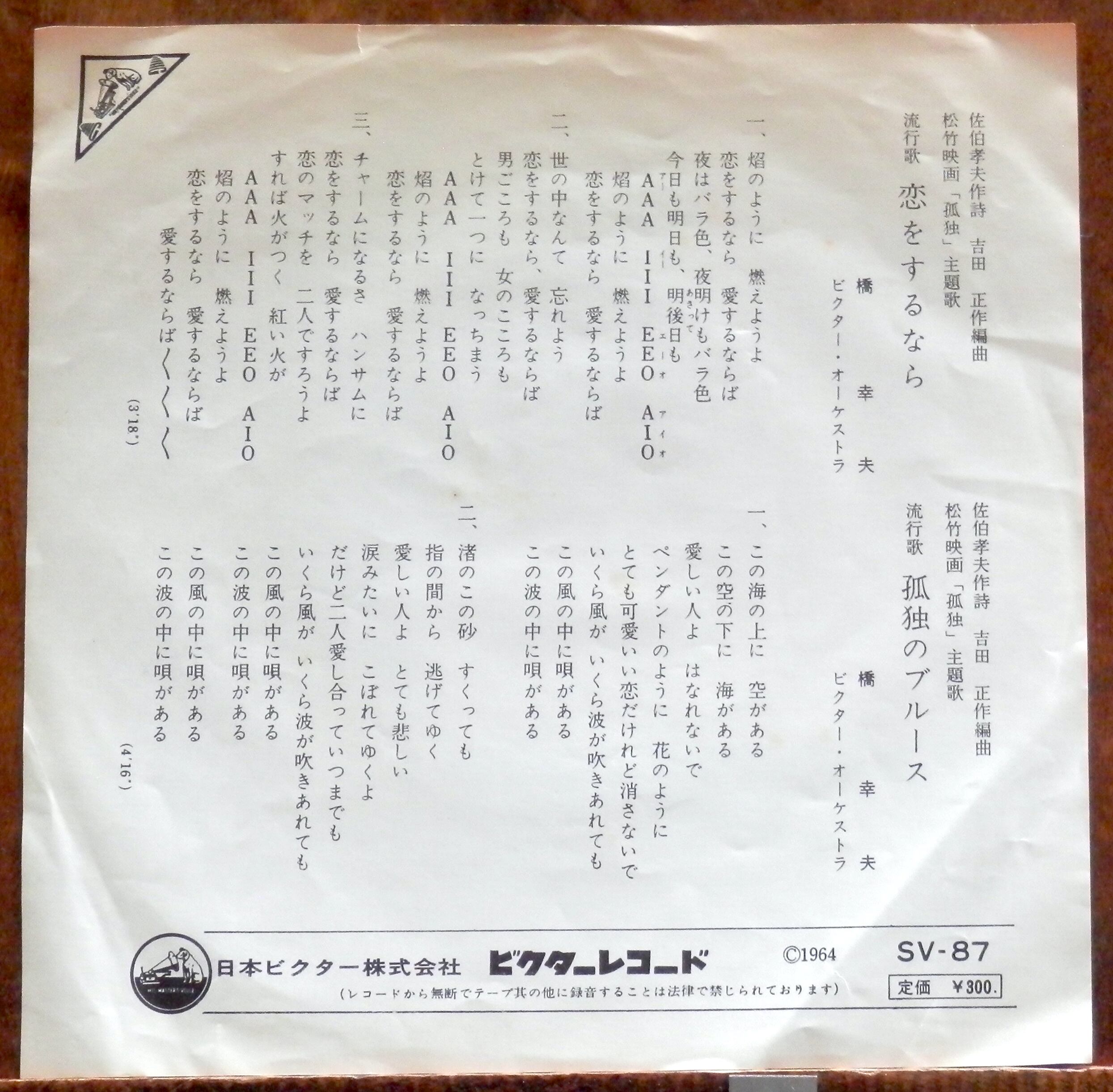 '64【EP】橋幸夫 - 恋をするなら