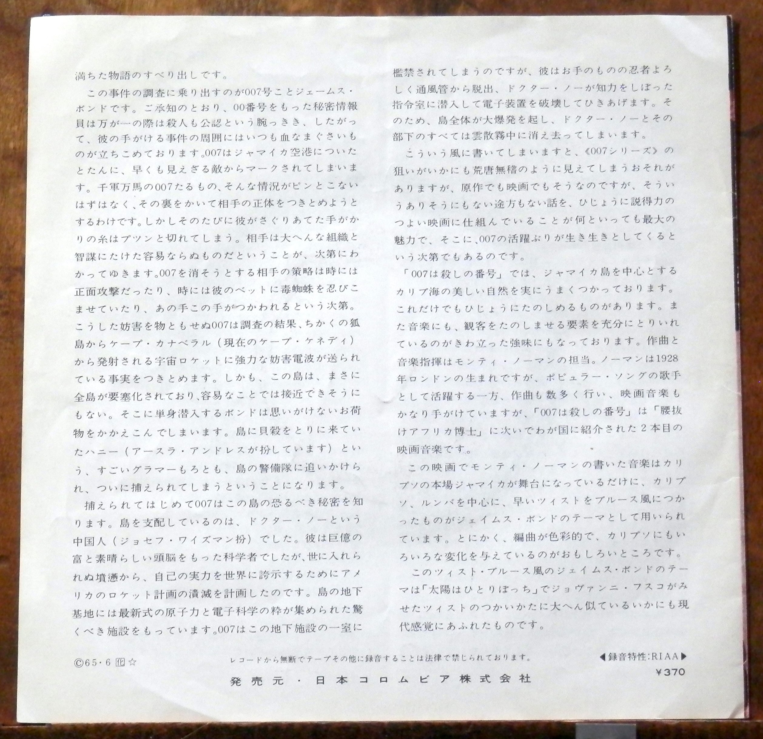 B面はご存じボンドのテーマ♪