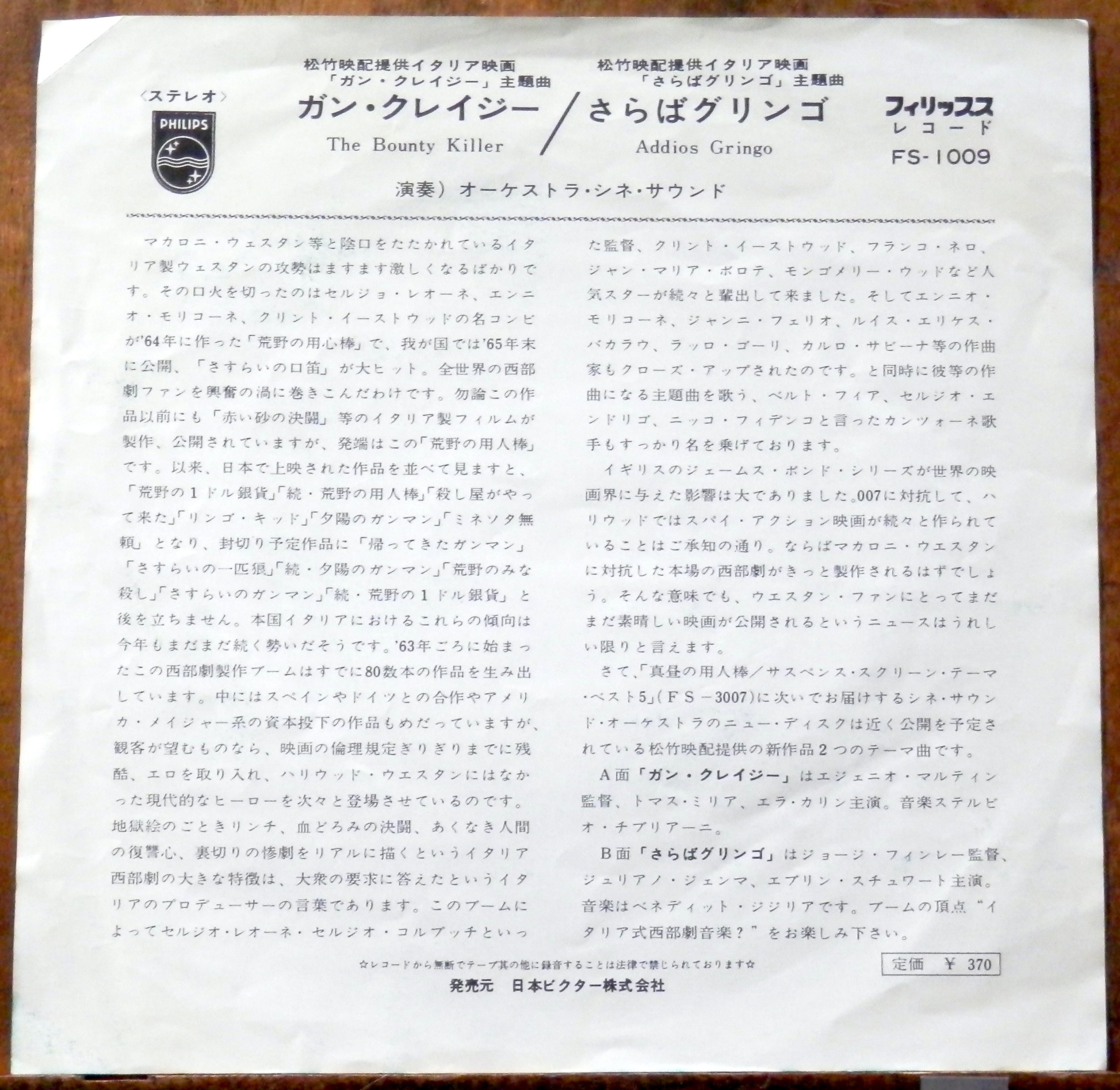 '66【EP】映)ガンクレイジー/さらばグリンゴ *白ラベル