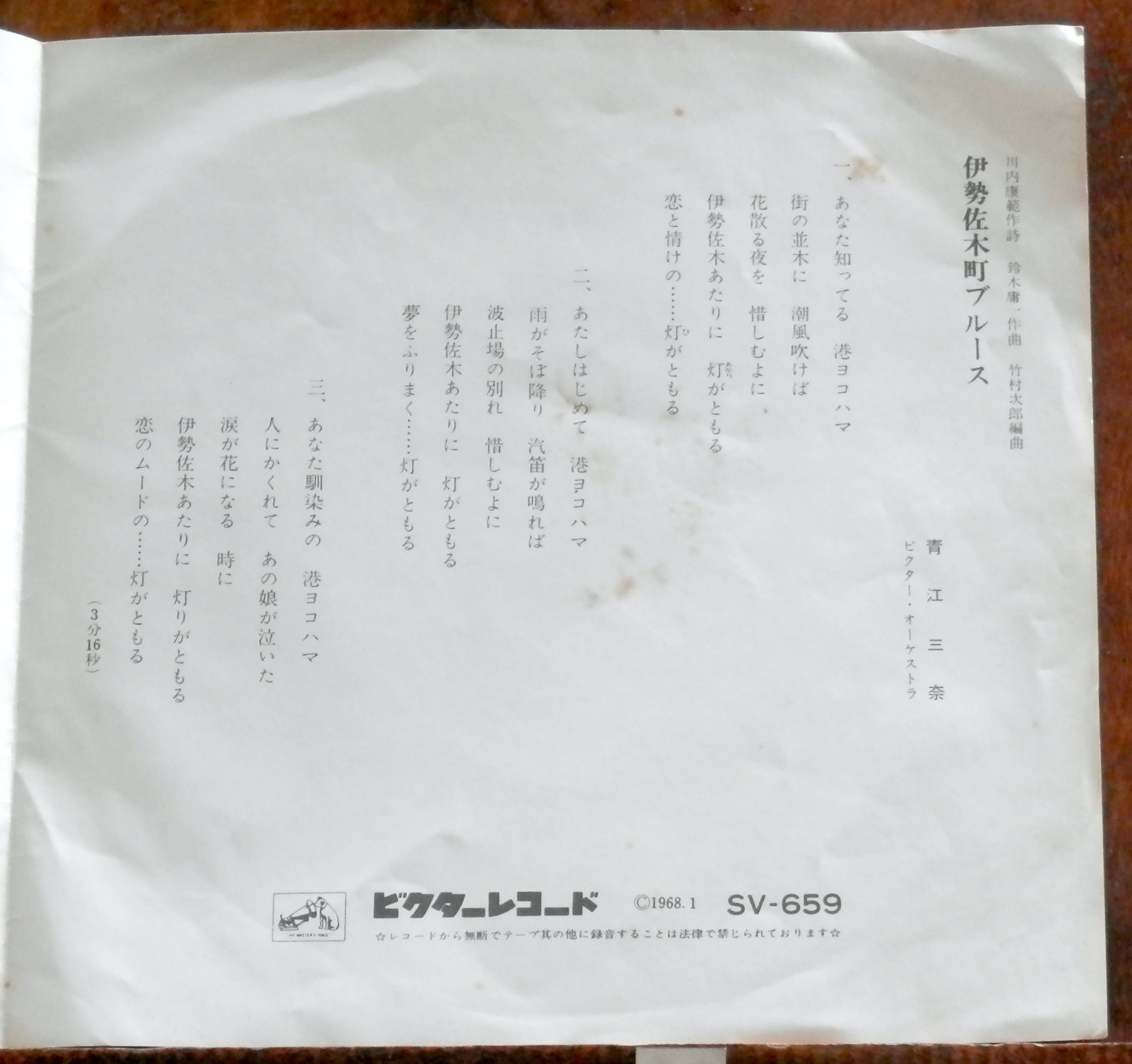 '68【EP】青江三奈 - 伊勢佐木町ブルース