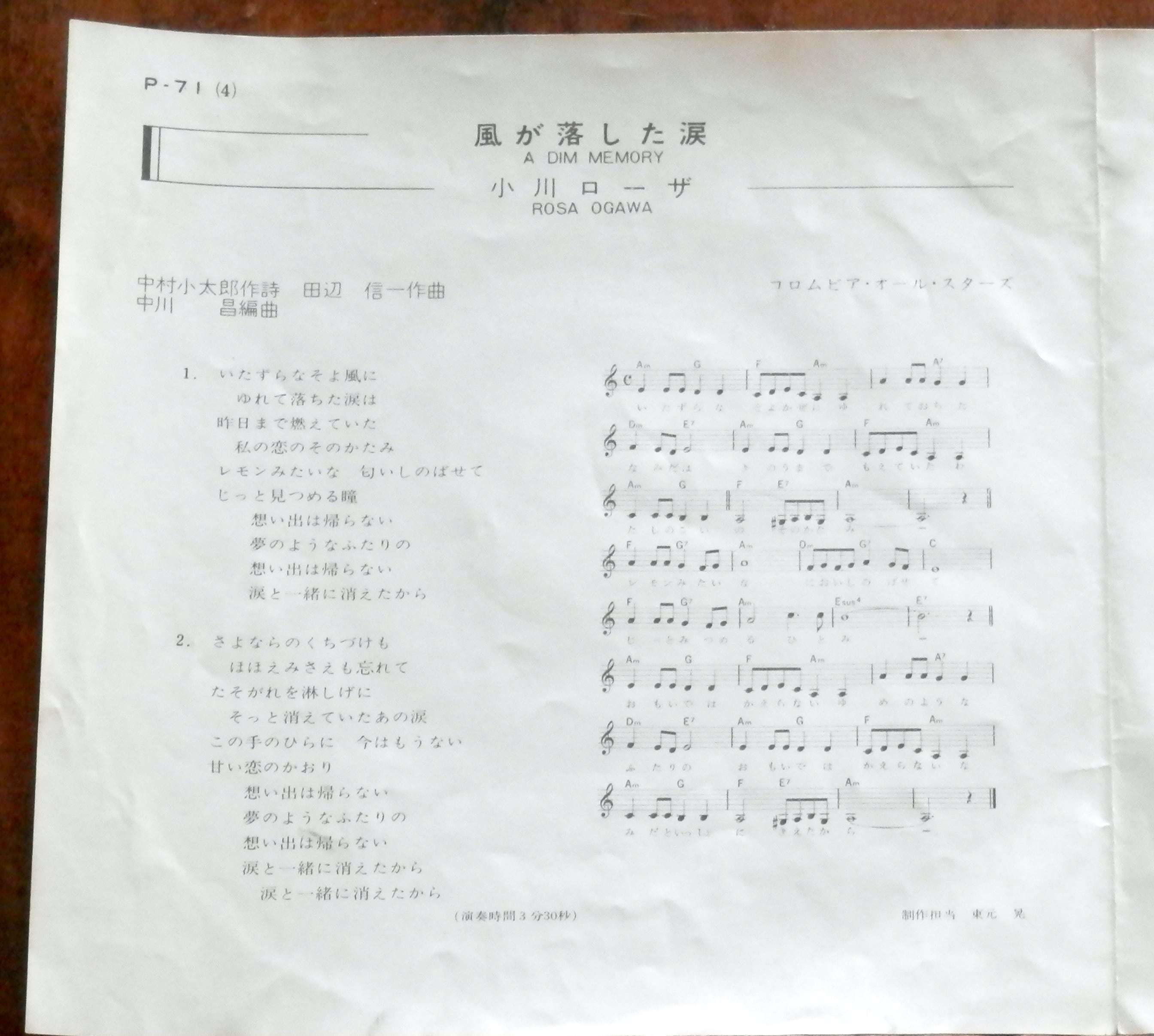 '69【EP】小沢ローザ - 風が落とした涙 *ピンナップジャケ