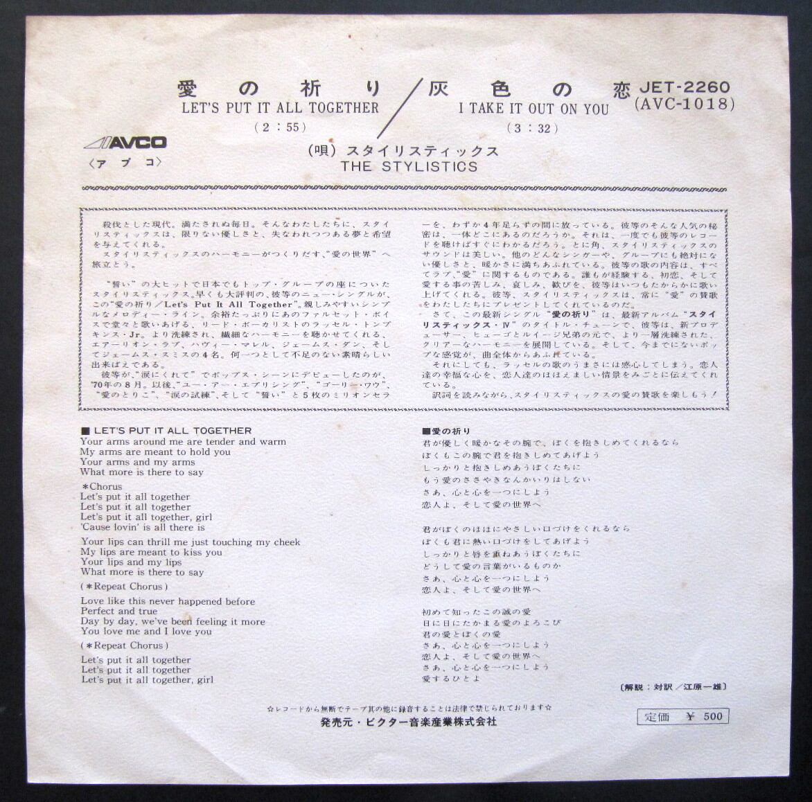 '74【EP】スタイリスティックス / 愛の祈り