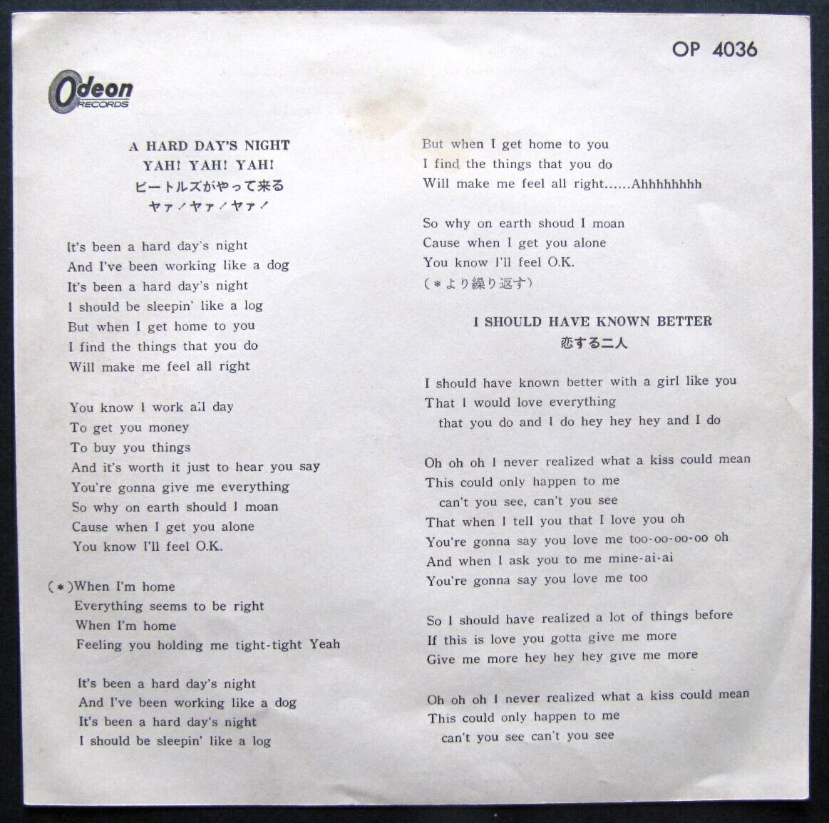 ●説明:1965 / OR-4036 / 東芝音工=ODEON