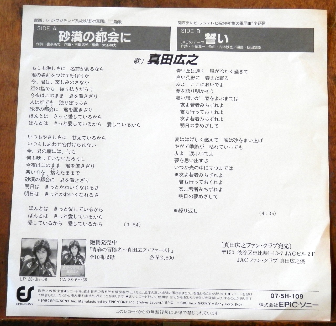 ●説明:1982 / 07 5H-109 / CBSソニー