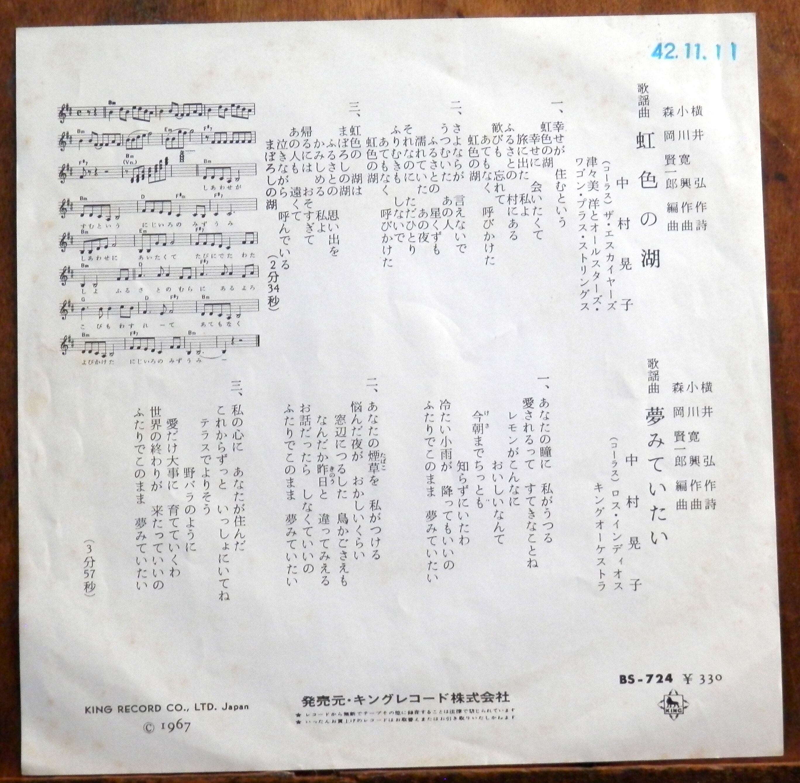 '67【EP】中村晃子 - 虹色の湖
