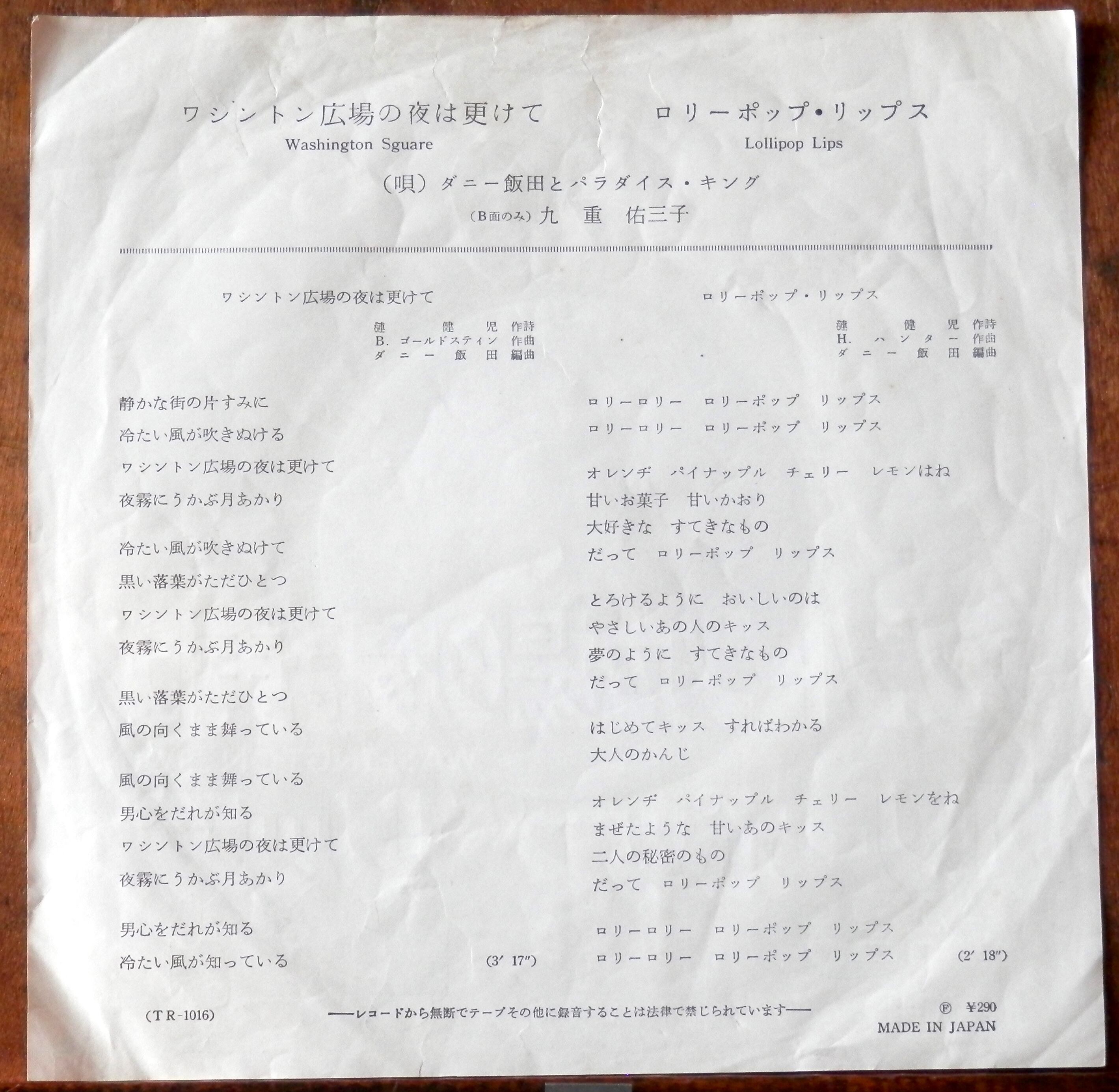 '64【EP】九重祐三子 - ワシントン広場の夜は更けて *赤盤