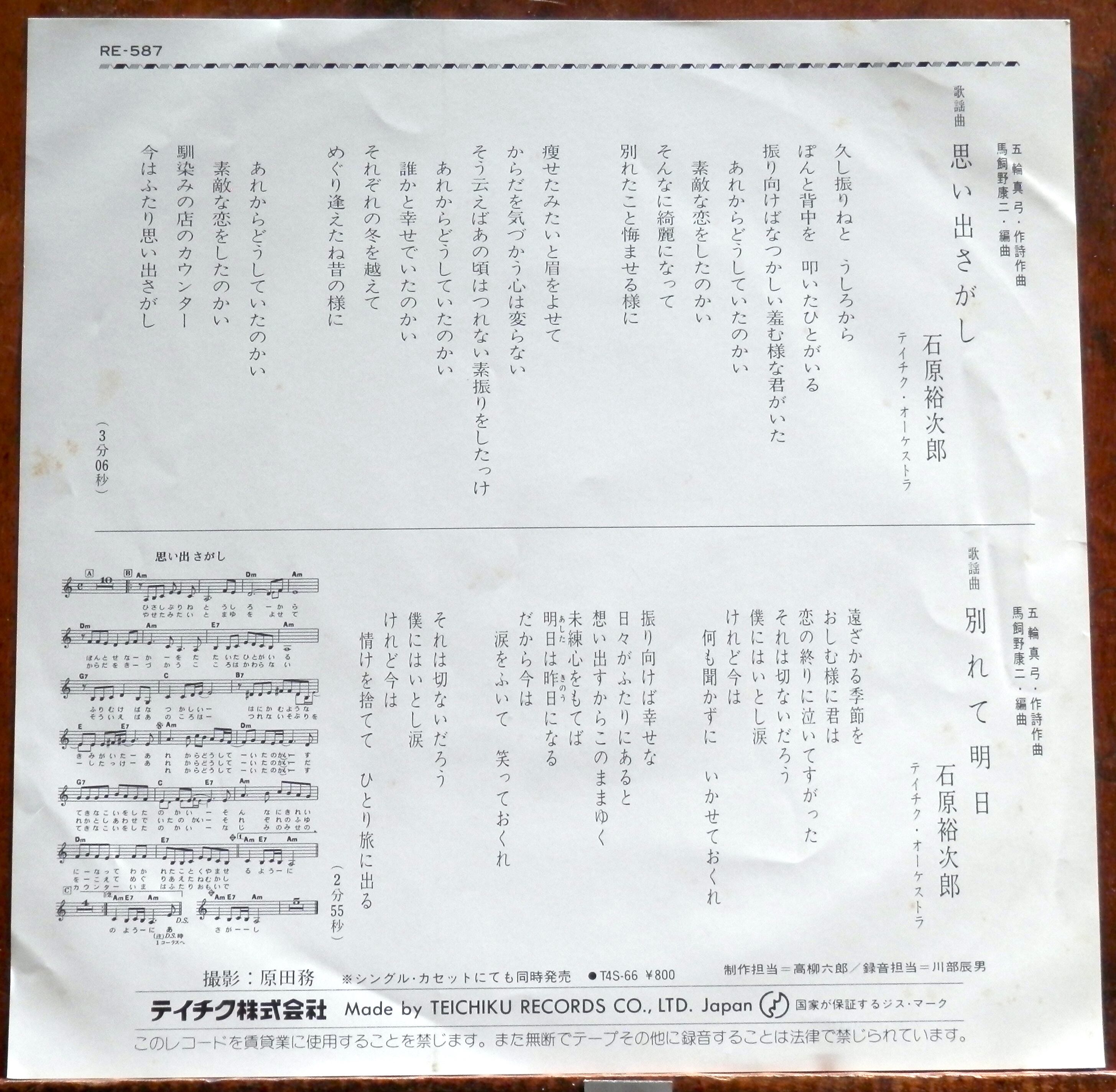 '83【EP】石原裕次郎 - 思い出さがし *五輪真弓